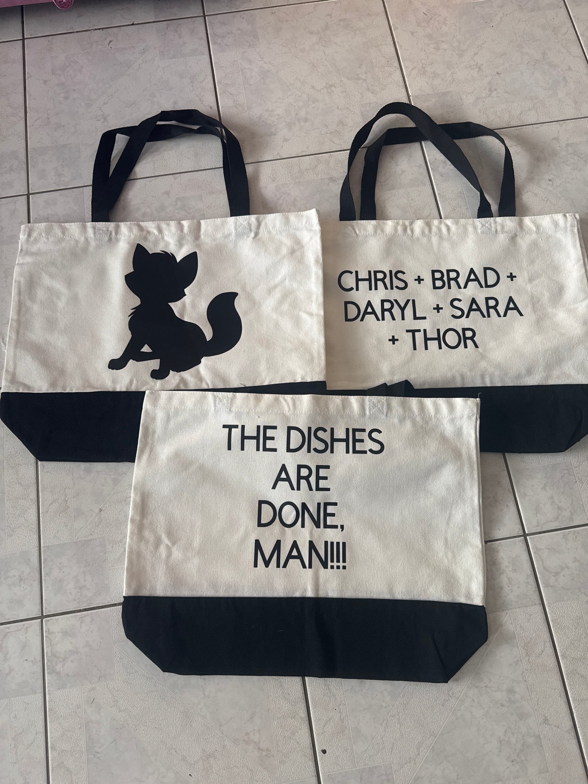 Tote bag with character names from “Adventures in Babysitting” autographed by Keith Coogan, who played “Brad”.